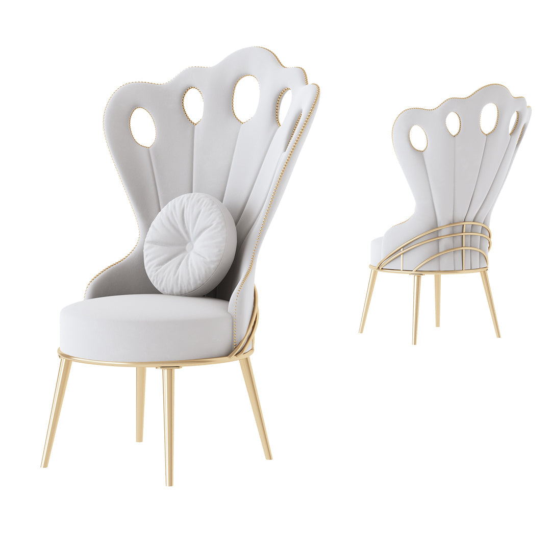 Poltrona Pavone Grigia in Velluto con Supporto in Ferro Dorato
