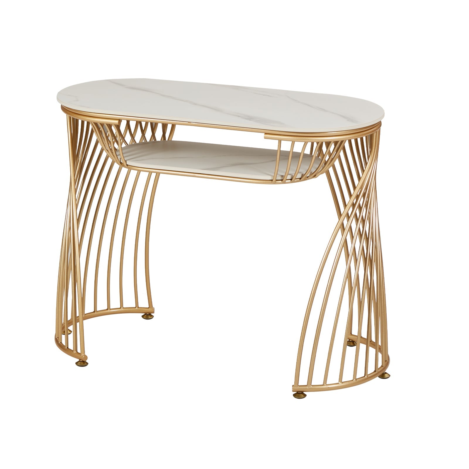 Il tavolo per manicure "Mousika Goddess" è un'opera d'arte con una superficie in marmo e una struttura in ferro battuto. Il suo design a linea curva dona un'estetica raffinata e attraente.