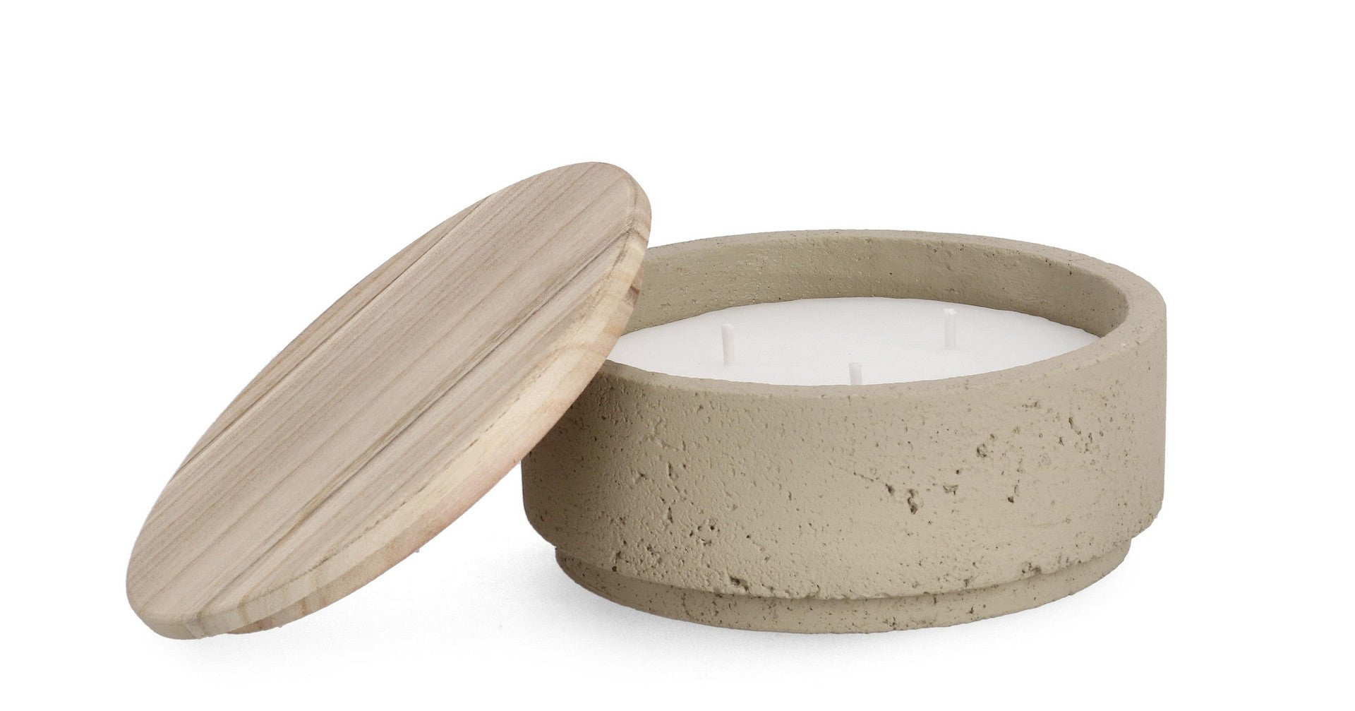 PARAFFINA, 520G. VASO IN CEMENTO E COPERCHIO IN LEGNO.