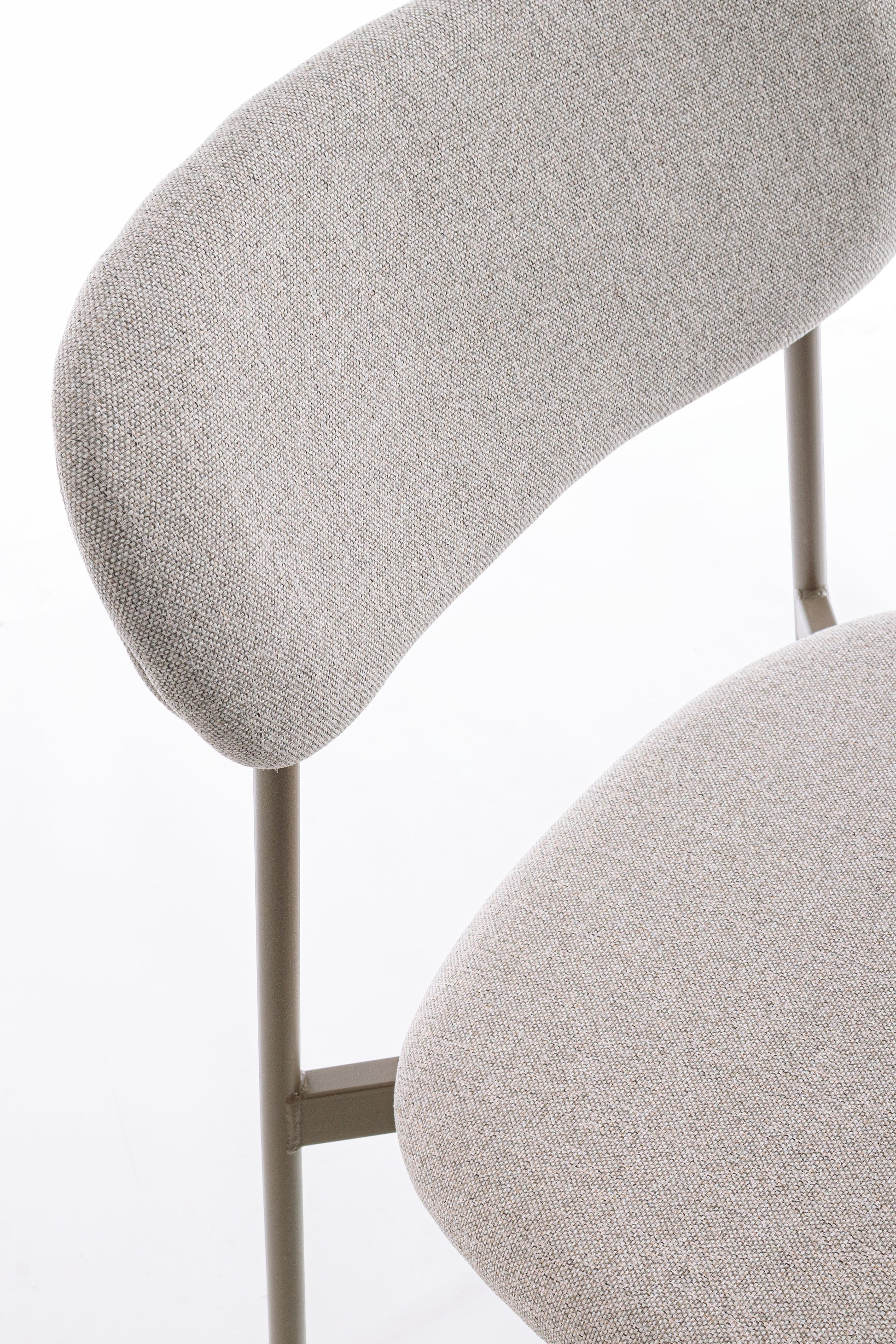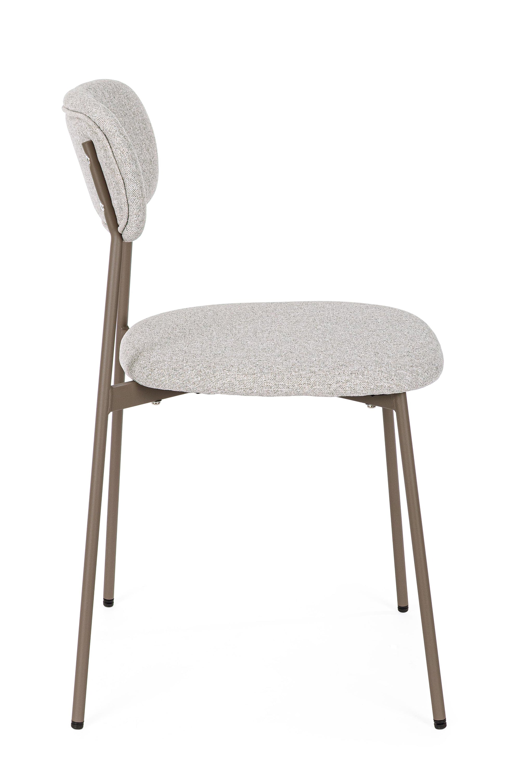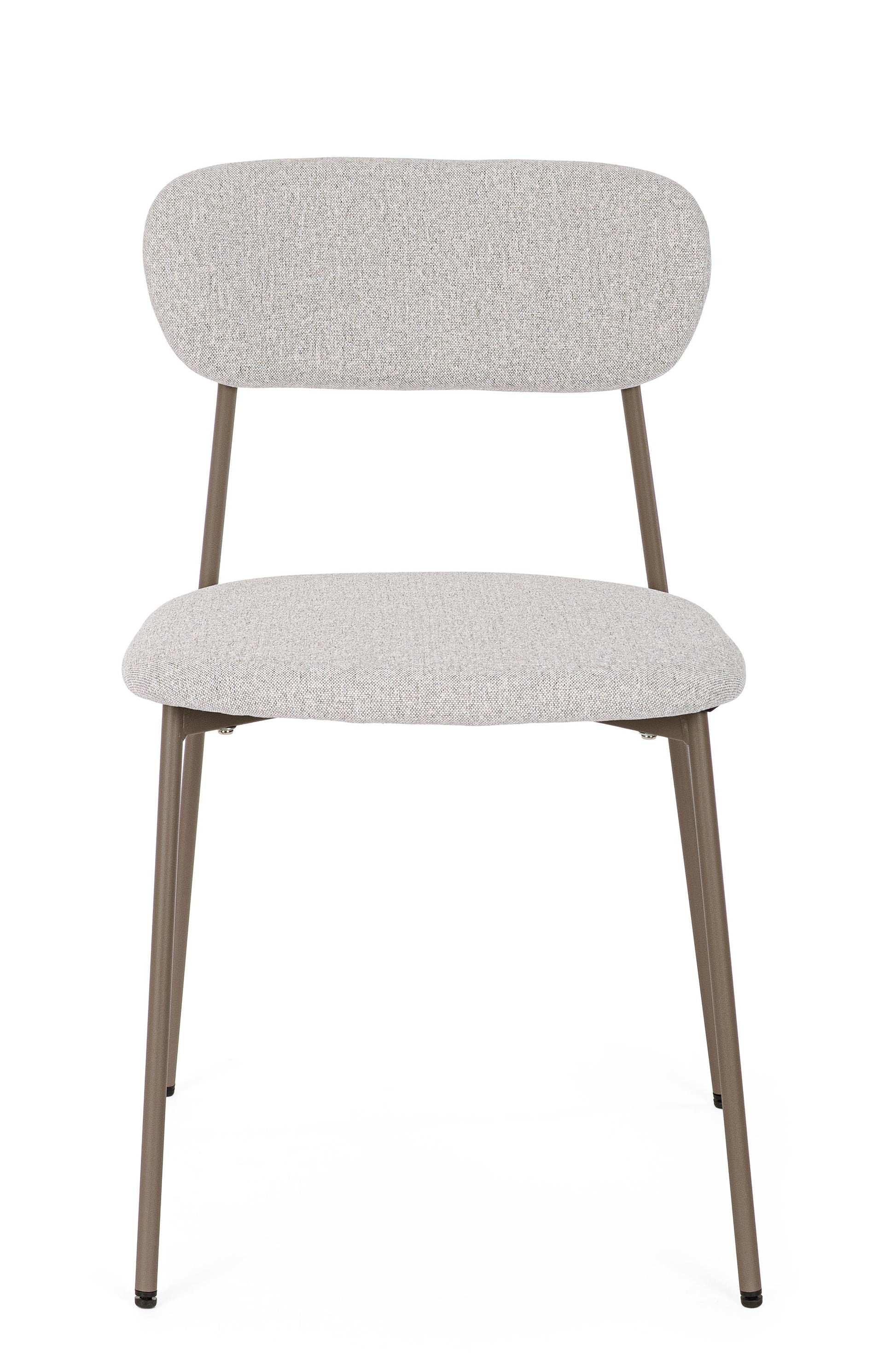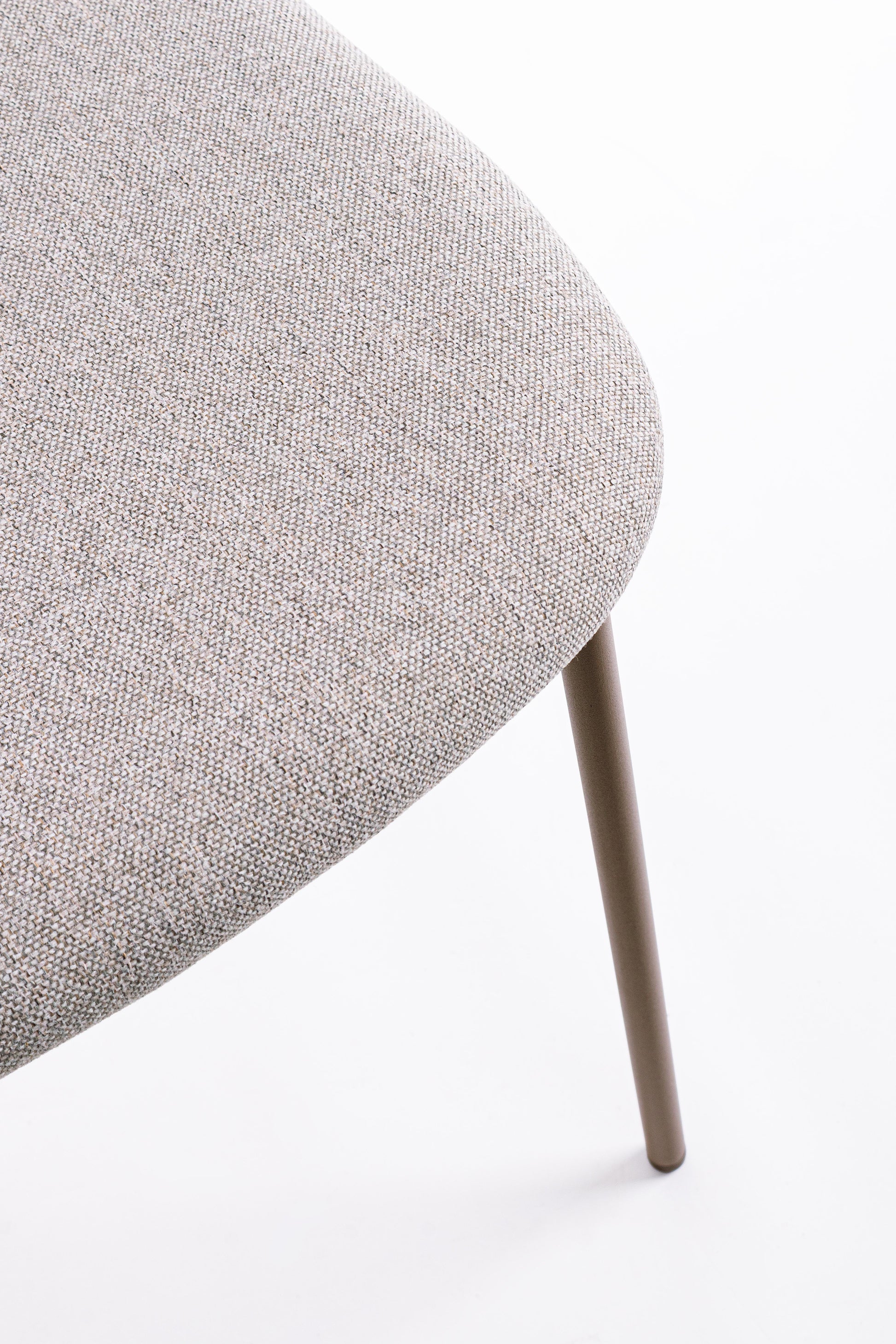 STRUTTURA E GAMBE IN ACCIAIO VERNICIATO A POLVERE. SEDUTA IN COMPENSATO. IMBOTTITURA IN SCHIUMA POLIURETANICA. RIVESTIMENTO IN 100% POLIESTERE. GAMBE DA ASSEMBLARE. 4 PZ QUANTITATIVO MINIMO ORDINABILE