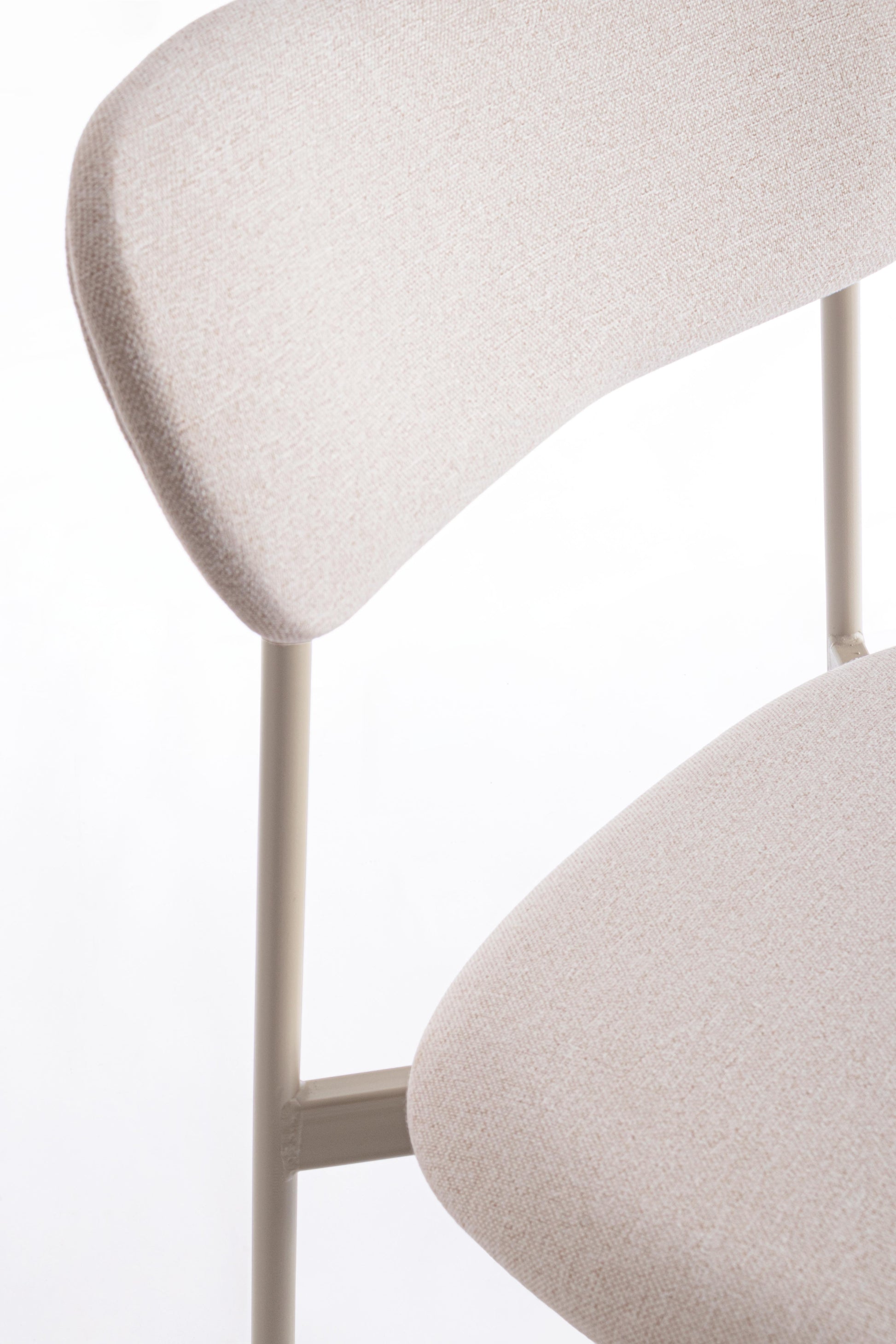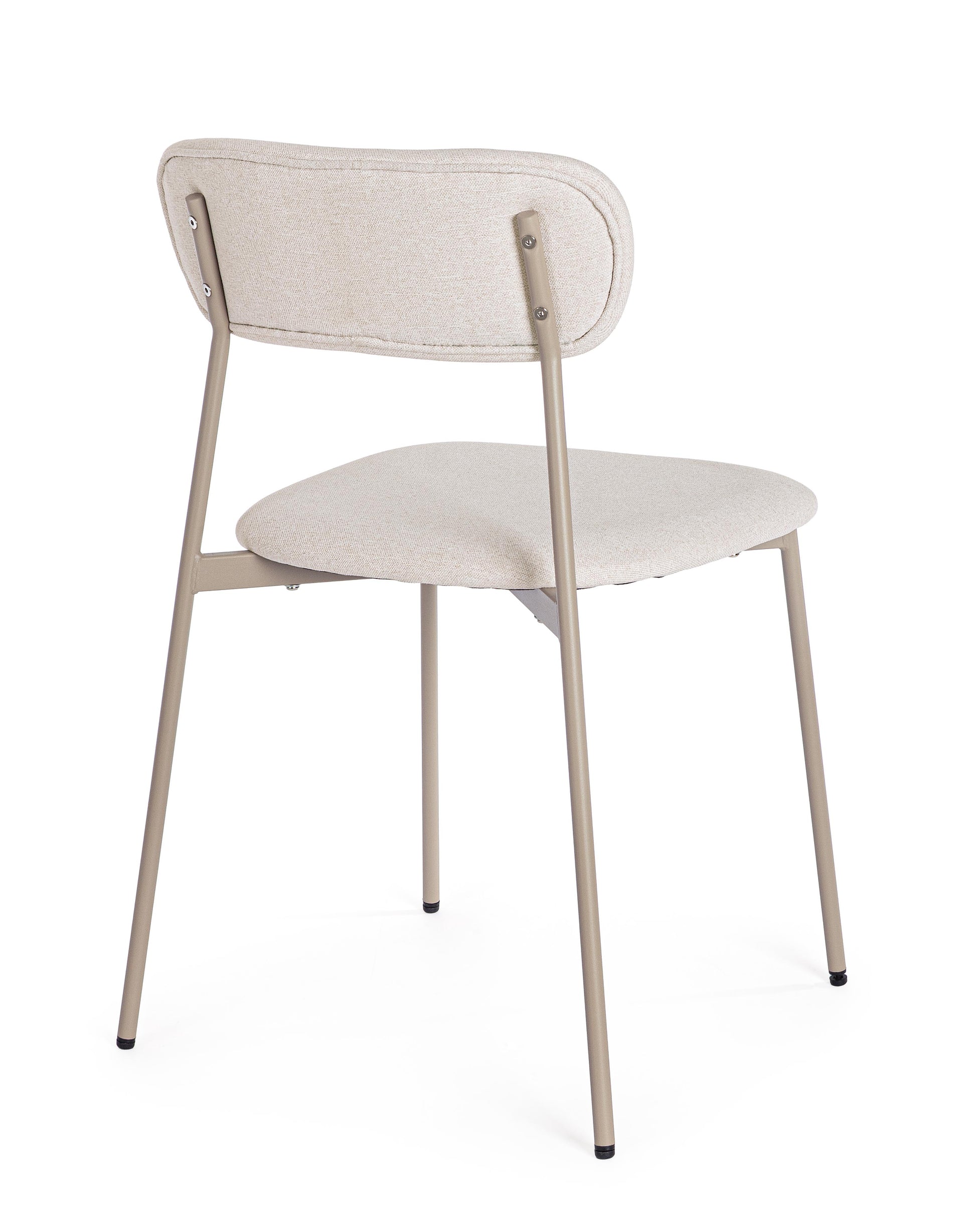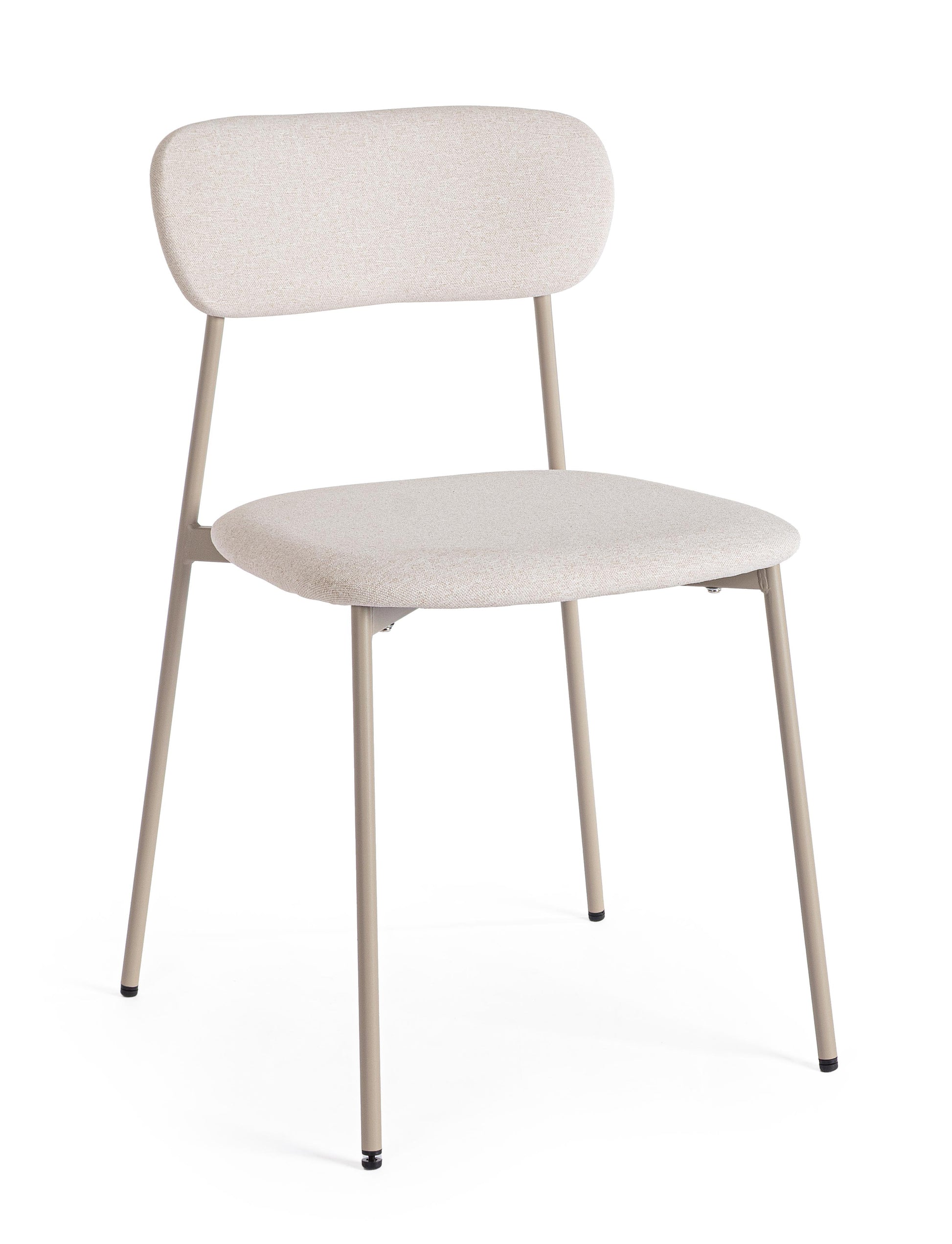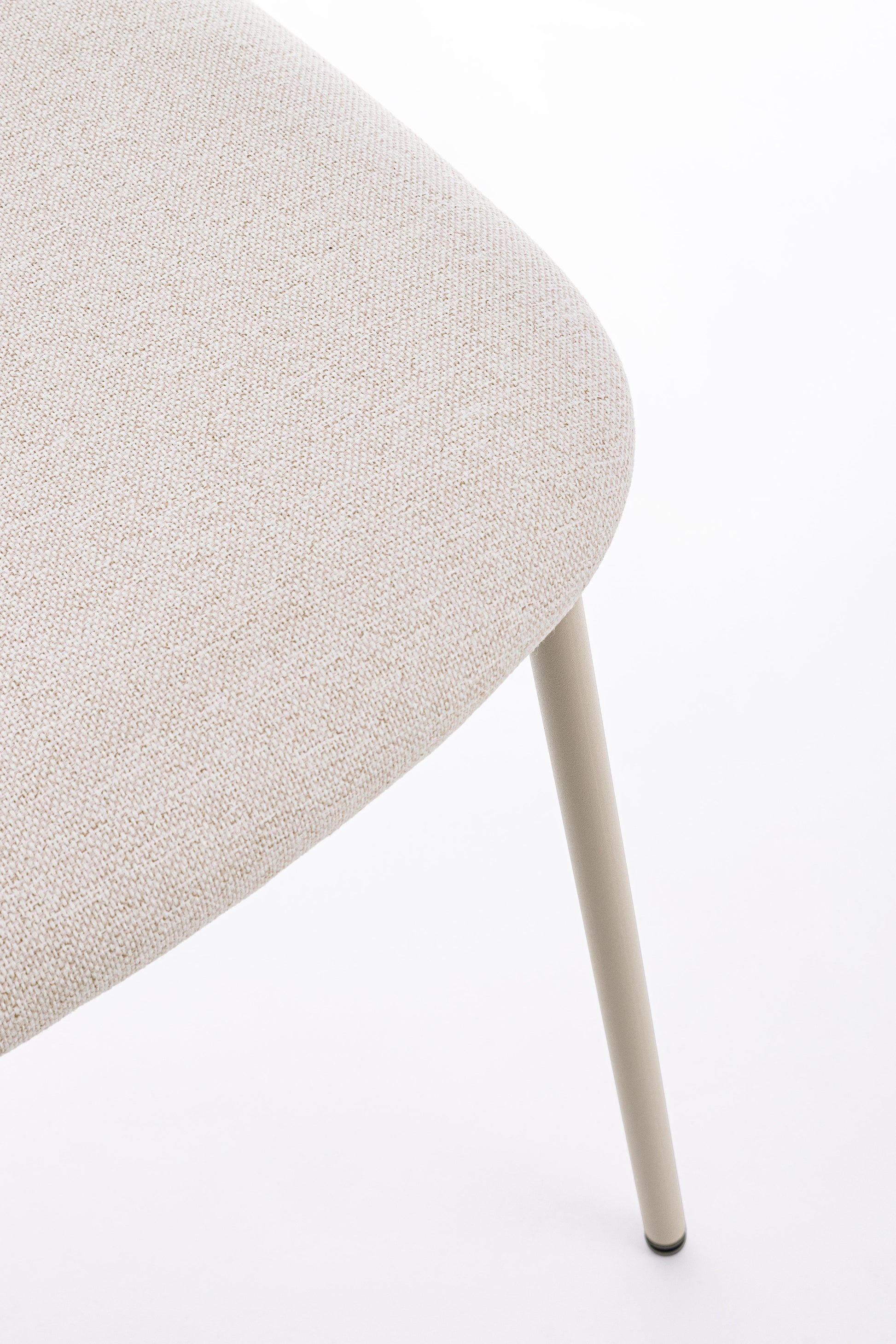 STRUTTURA E GAMBE IN ACCIAIO VERNICIATO A POLVERE. SEDUTA IN COMPENSATO. IMBOTTITURA IN SCHIUMA POLIURETANICA. RIVESTIMENTO IN 100% POLIESTERE. GAMBE DA ASSEMBLARE. 4 PZ QUANTITATIVO MINIMO ORDINABILE