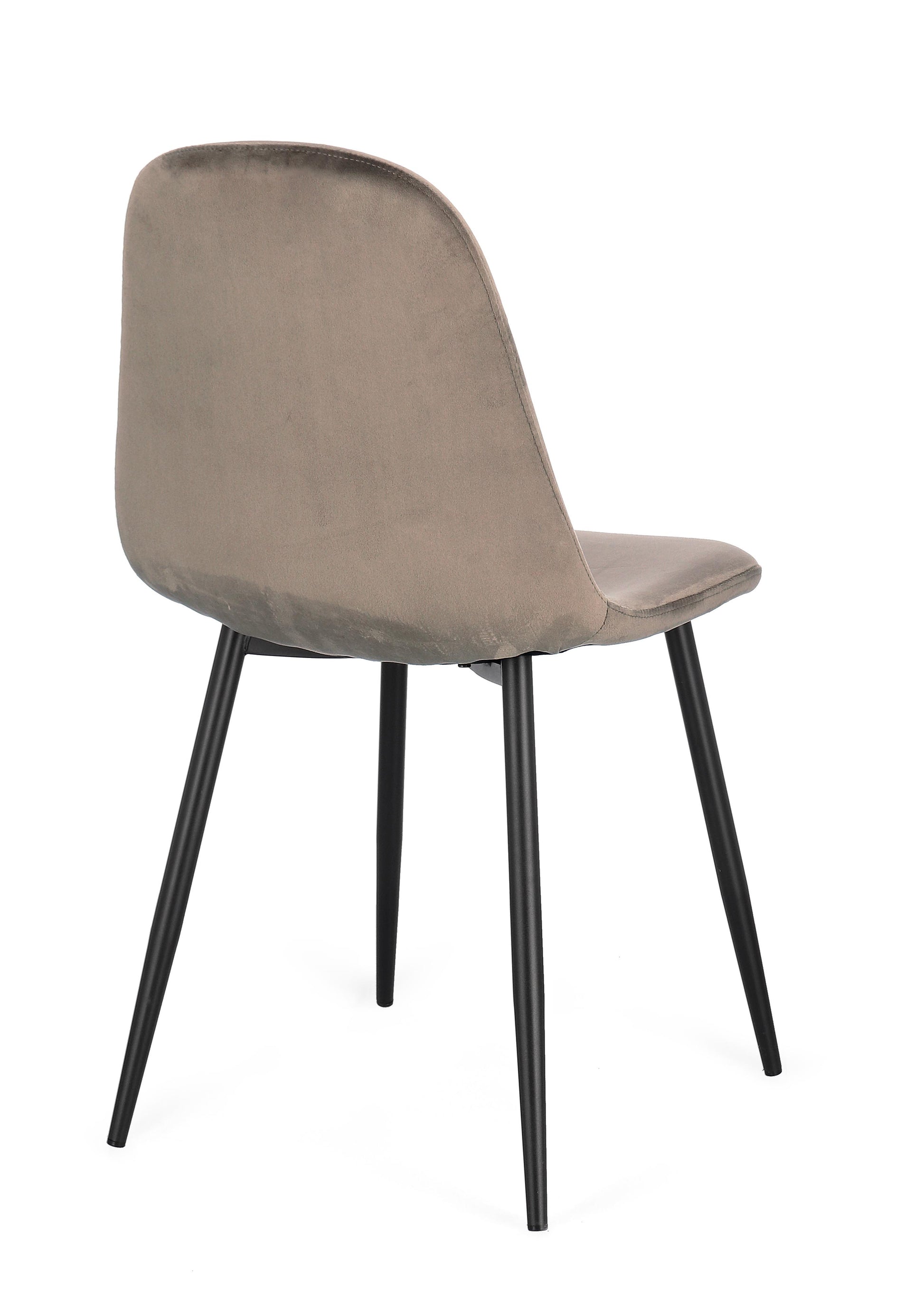 STRUTTURA SEDUTA E SCHIENALE IN COMPENSATO. GAMBE IN ACCIAIO VERNICIATE A POLVERE. IMBOTTITURA IN SCHIUMA POLIURETANICA E RIVESTIMENTO IN POLIESTERE (EFFETTO VELLUTO). DA ASSEMBLARE. 4PZ QUANTITATIVO MINIMO ORDINABILE