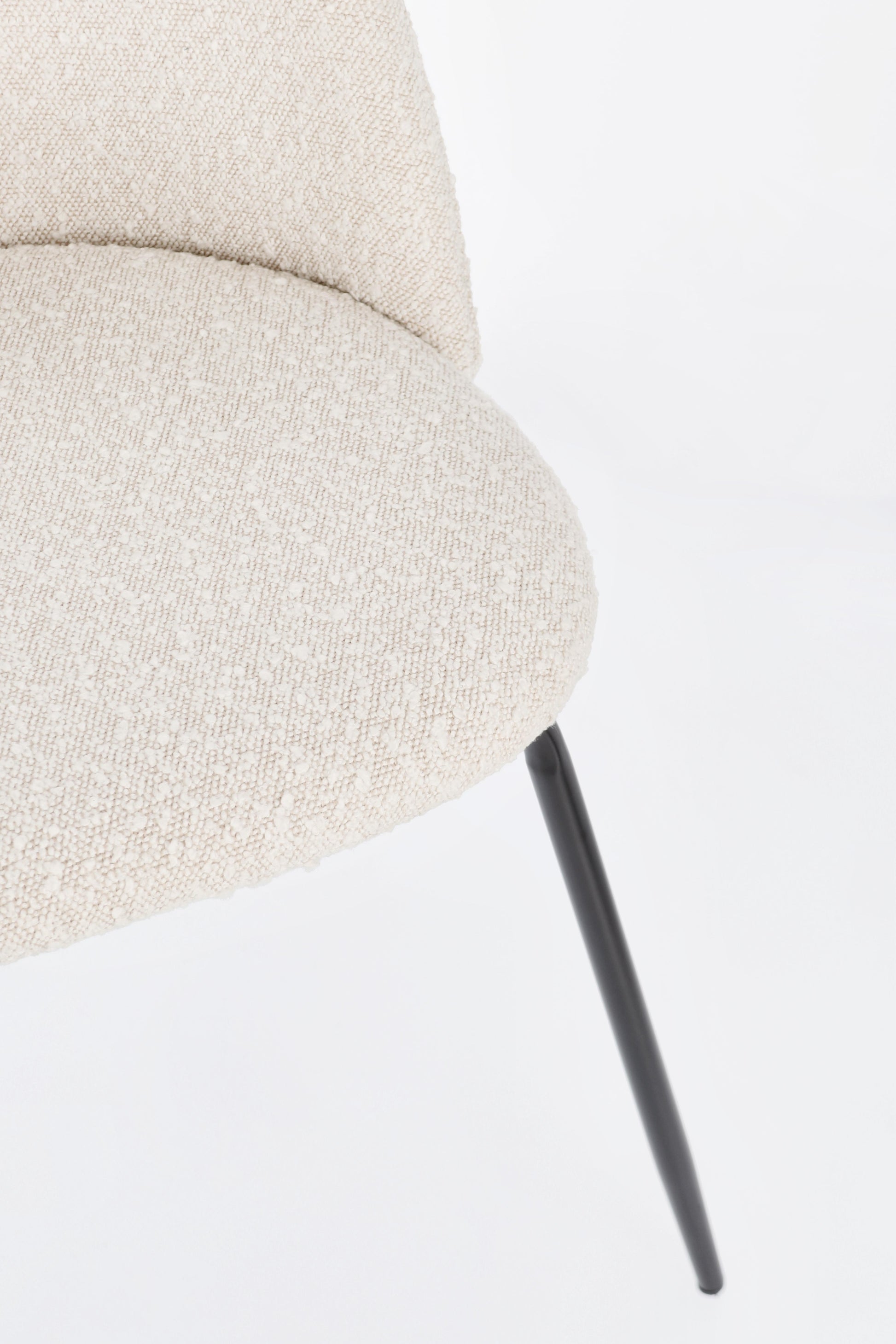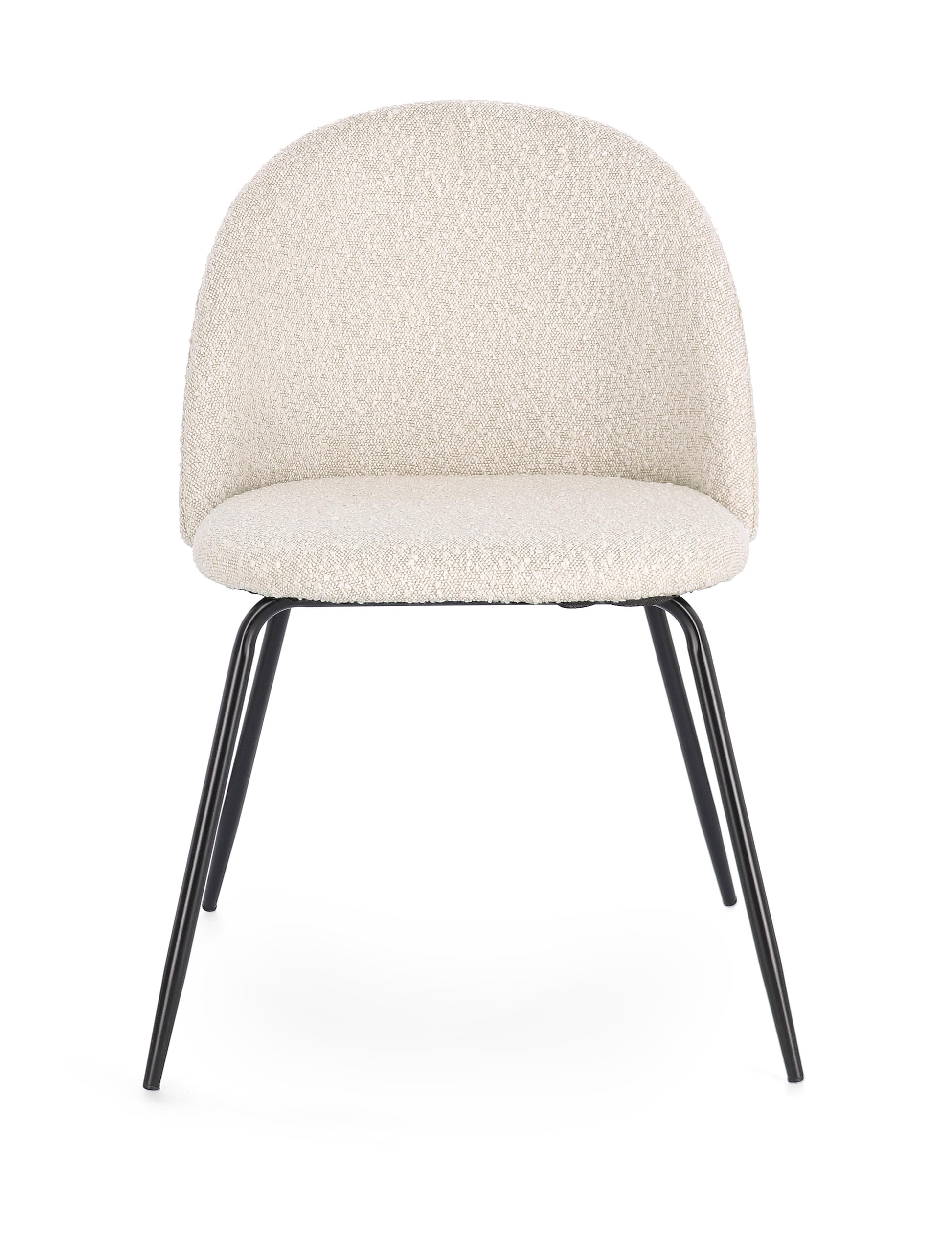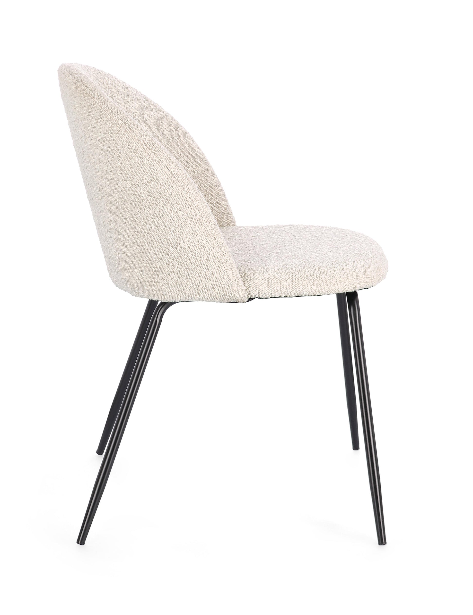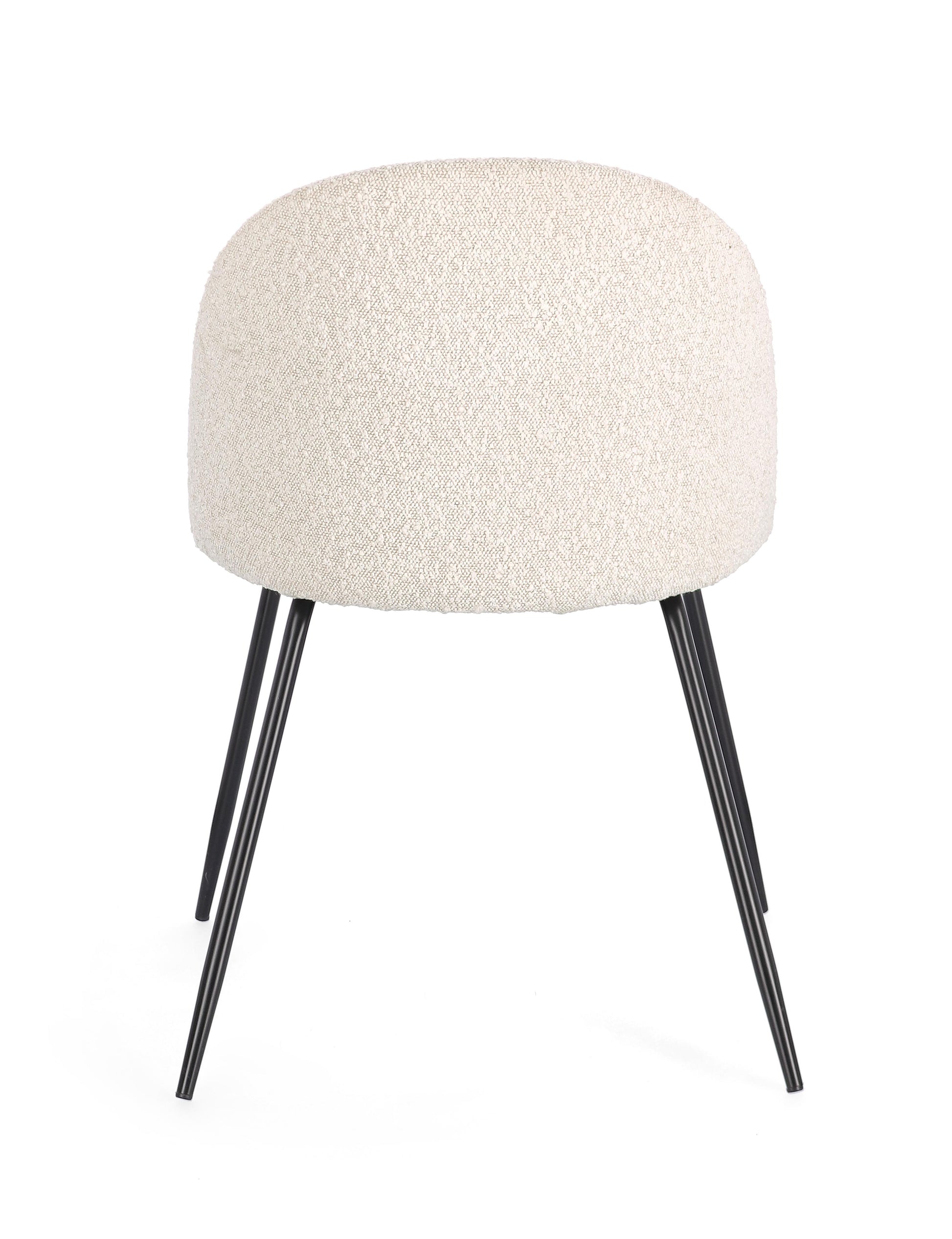 4 PZ - GAMBE IN TUBOLARE DI ACCIAIO CON CROMATURA COLOR NERO. SCHIENALE E SEDUTA IMBOTTITI IN SCHIUMA POLIURETANICA E RIVESTITI IN 95% POLIESTERE 5% ACRILICO EFFETTO BOUCLE'. GAMBE DA ASSEMBLARE.